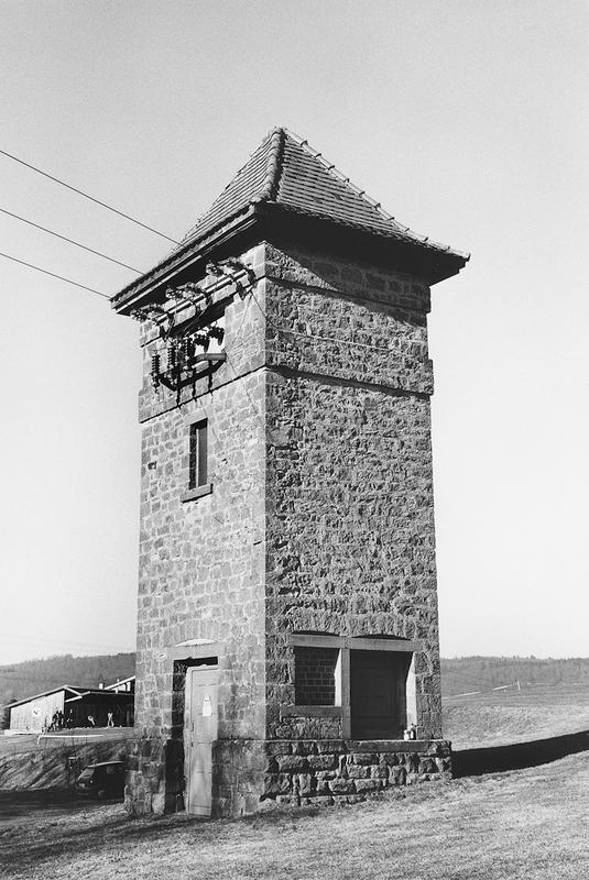 Parallel dazu das Verwalterhaus um 1900, ein eingeschossiges, verputztes Gebäude in Massivbauweise auf Sandsteinsockel; Fassade mit 8 Stichbogenfenstern in Sandsteingewänden, jeweils zwei zu vier Achsen zusammengefasst, Satteldach mit spitzgiebligen Gauben.