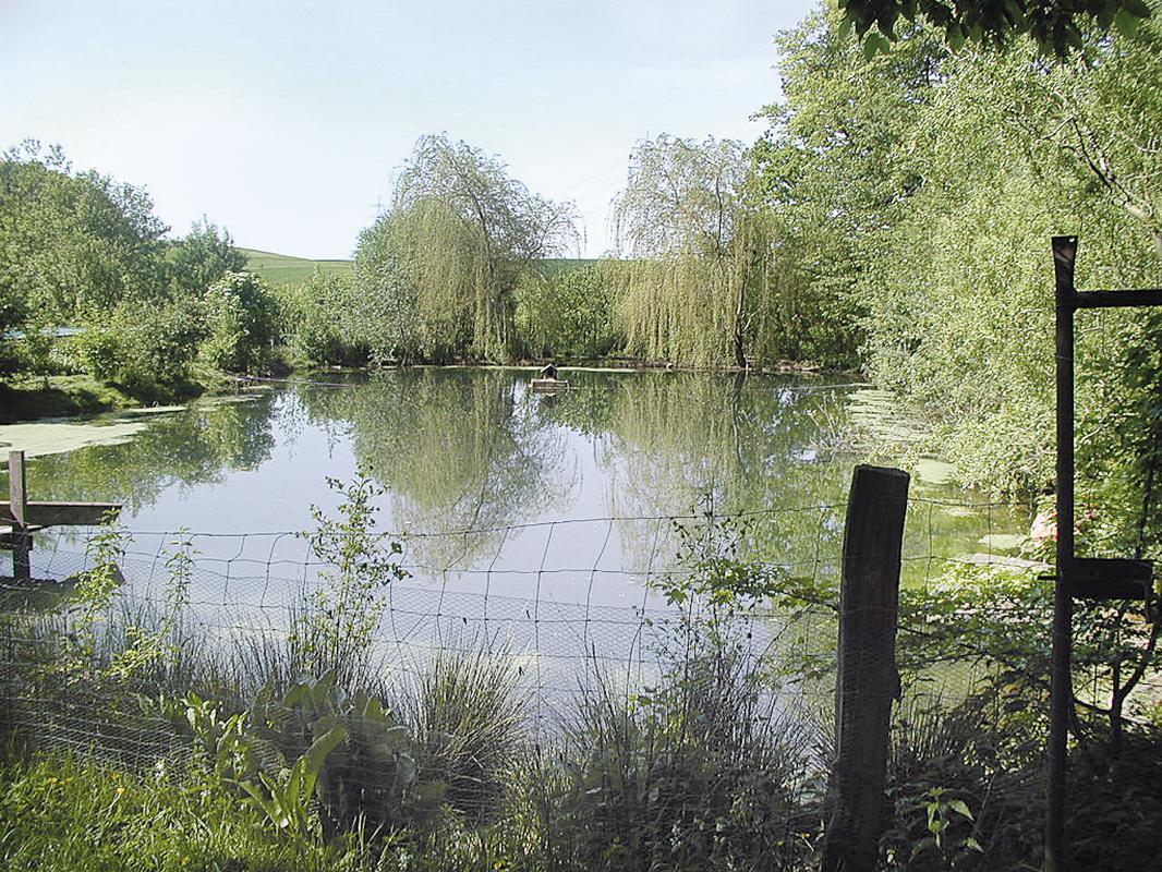 Zum Gutshof gehören der südlich gelegene Fischteich und der Trafoturm aus den Zwanziger Jahren des 20. Jahrhunderts in Sandsteinquadern mit rustiziertem Sockel, umlaufenden Simsbändern, Tür- und Fenstergewänden aus Sandstein, Walmdach mit Aufschiebling, die Firstbekrönung fehlt.