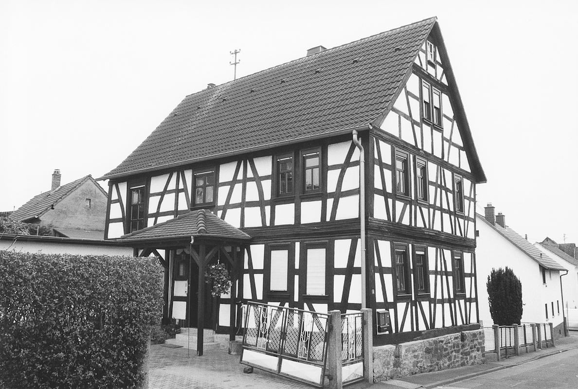 Zweigeschossiges, giebelständiges Fachwerkwohnhaus von 1790 mit kräftiger Rähm und Diagonalstreben auf einem Kellersockel aus grob behauenen Sandsteinquadern, Satteldach mit Aufschiebling. Klares, zeittypisches Fachwerkgefüge.