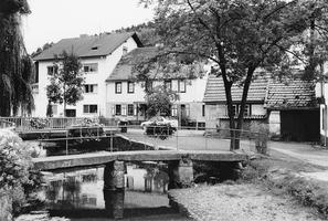 Über dem kanalisierten Bachbett der Jossa drei Stege aus langen Sandsteinen, heute am Auflager gebrochen. Mittig Rillenschnitt zur Wasserableitung. Datierung des im oberen Bild sichtbaren Steges auf 1806. Daher ist die Kanalisierung und der damit verbundene Bau der Brücken über die Jossa um das Jahr 1806 anzunehmen. Das Bachbett mit den Stegen ist ein unverzichtbarer Bestandteil des alten Ortsbildes.