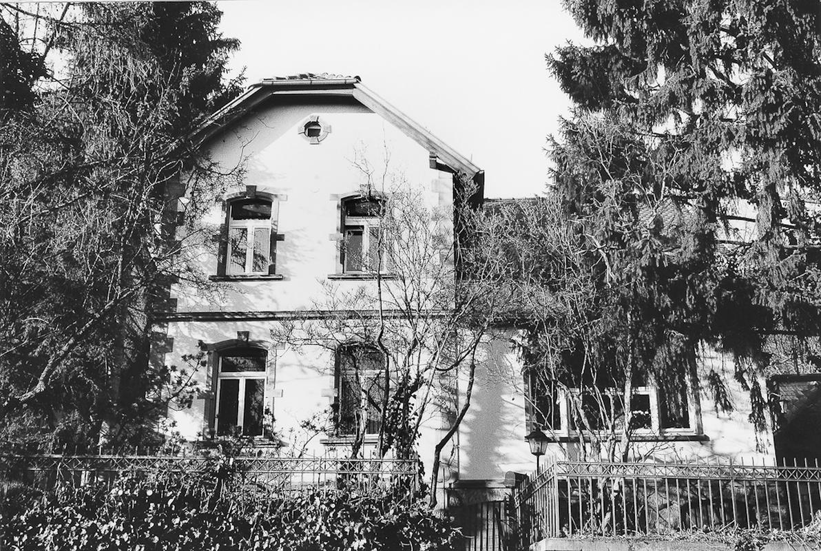 Oberhalb der Straße eineinhalbgeschossige, traufständige Villa mit giebelständigem Eckrisalit in historistischen Formen um 1900. Verputzter Massivbau auf Sandsteinsockel mit Eckquaderung, Simsband und Gewänden in Sandstein. Akzentuierung der Fenstergewände durch Kämpfer- und Schlusssteine. Zwei- und dreiflügelige Fenster mit Oberlicht und stichbogigem Abschluß. Krüppelwalmdächer mit Drempel auf profilierten Balkenköpfen. Belüftung der Giebel durch kleine Okuli in Sandsteingewänden. Erschließung des Hauses auf der Westseite.