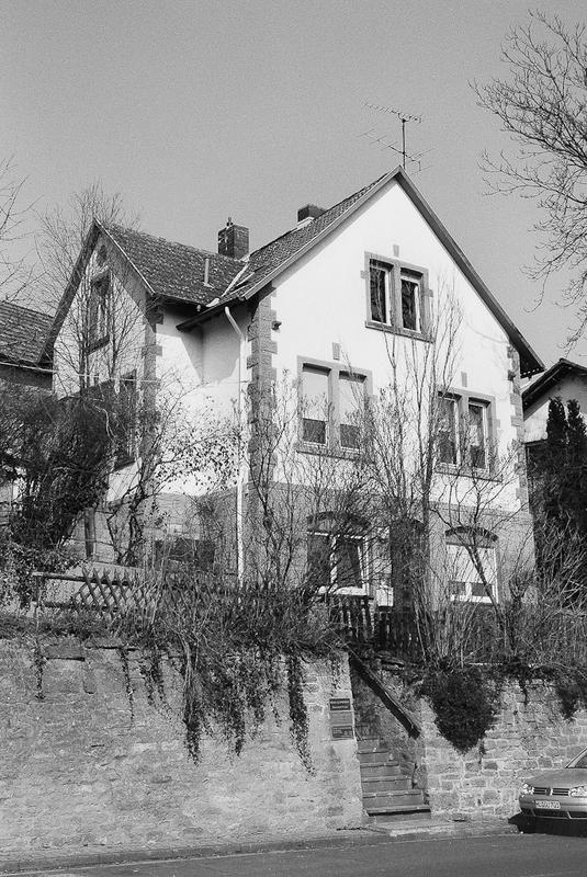 Ursprünglich etwas isoliert um 1895 errichtete kleine Hofanlage aus zweigeschossigem, giebelständigem Wohnhaus und dahinter, am Friesenborn, querstehender Sandsteinscheune. Teilweise verputzter Sandsteinbau mit westlichem Risalit, Erdgeschoss in gepickten Sandsteinquadern. Giebelseitige Eingangstür und zwei flankierende große Fenster mit Stichbögen weisen auf eine ehemalige gewerbliche Nutzung des Erdgeschosses hin. Satteldächer, im Giebel des Seitenrisalites ein kleiner Okulus in Sandsteinrahmung.