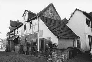 Traufständiges, zweigeschossiges Fachwerkhaus aus dem 19. Jahrhundert. Satteldach mit Aufschiebling und kleinem Zwerchhaus, wohl ehemalige Ladeluke. Fachwerk mit Lehmputz und Lehmstrohgefachen gut erhalten. Erdgeschoss massiv aus Sandstein. An der Giebelseite kleiner Anbau mit angelehntem Pultdach, der als Verkaufsfläche genutzt wird.
