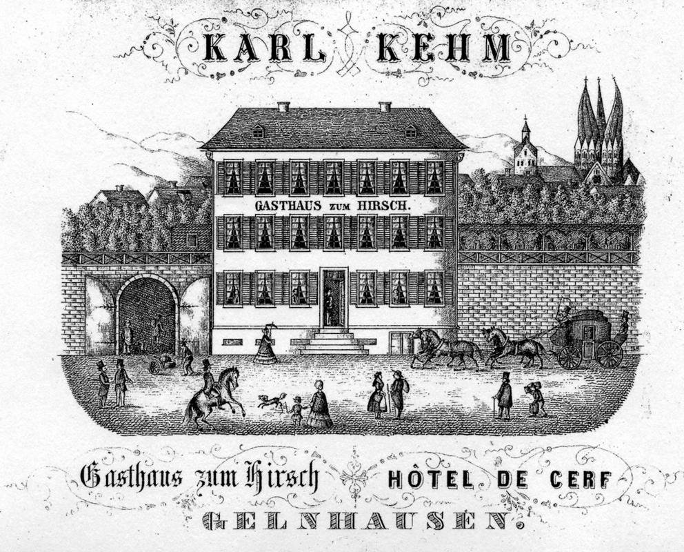 Durch die Verlegung der alten Reichsstraße an den südlichen Rand der Altstadt sah sich der Posthalter und Gastwirt Johann Philipp Clever gezwungen, sein Gasthaus "Goldener Hirsch“ von der Oberen Haitzer Gasse 25 in die Neue Straße zu verlegen. Das dreigeschossige Fachwerkhaus wurde auf die in diesem Bereich weitgehend abgebrochene Stadtmauer gesetzt. Westlich wurde in den Hang eine Remise eingebaut. Die Nebengebäude und Stallungen zum Gasthaus ließ er auf der gegenüber liegenden Straßenseite, heute Berliner Straße 7a, errichten. Das Gasthaus wurde für die Nachwelt berühmt durch den Maler und Zeichner Ludwig Emil Grimm, einen der drei Brüder Grimm, der seinen Besuch dort in seinem "Reisetagebuch in Bildern“ 1850 zeichnerisch festgehalten hat.