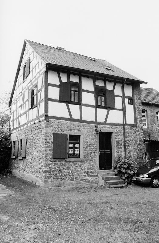 Traufständiges zweigeschossiges Wohnhaus, Erdgeschoss und nördliche Giebelwand in Sandstein, schlichtes Fachwerkobergeschoss. Vermutlich umgebauter Rest eines kleinen Burgmannenhauses. Zweiflügelige Haustür mit Oberlicht und kleiner Sandsteintreppe aus dem 19. Jahrhundert erhalten.
