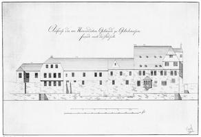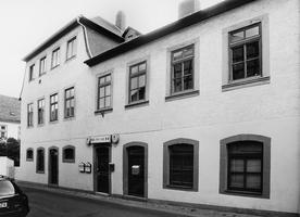 Langgestreckter, zweigeschossiger verputzter Barockbau aus dem 18. Jh. Vier Achsen traufständig, vier Achsen eines ehemaligen Nebengebäudes giebelständig. Erdgeschoss massiv, Obergeschoss Fachwerk; im Erdgeschoss Fenster- und Türgewände in Sandstein, Stürze mit Stichbogen und keilförmigem Schlussstein.