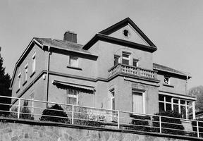 Auf einem Plateau oberhalb der Straße um 1895 erbaute ein- bis zweigeschossige, traufständige Villa in spätklassizistischem Stil. Dreiachsiger, symmetrisch gegliederter Klinkerbau mit Fenstergewänden, Stockwerkssims und Balustern in Buntsandstein. In der Höhenentwicklung stark betonte Mittelachse als Risalit mit Zwerchhaus ausgebildet, davor eingeschossiger Altan mit Balkon. Im Zwerchhaus Serlianamotiv aus Balkontür mit flankierenden Fenstern und großem Überfangbogen, profilierte Rahmung des Giebelfeldes mit Okulus. Breites Krüppelwalmdach, auf dem Zwerchhaus kleines Satteldach.