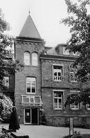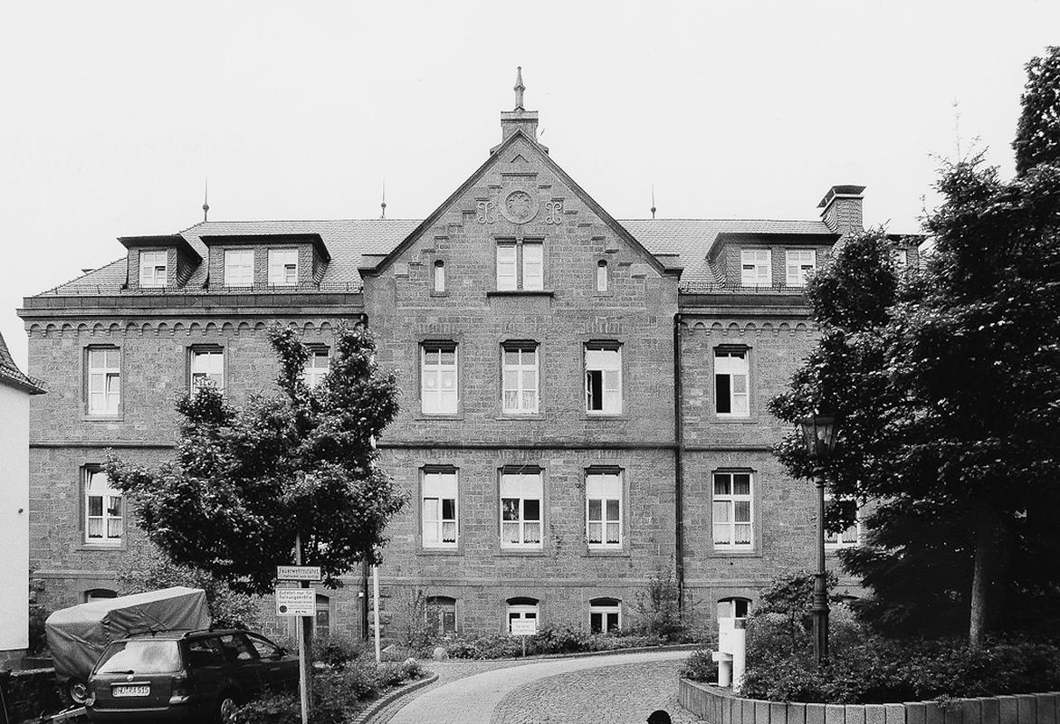 Auguste Clever stiftete das ehemalige Gartengelände zum Bau eines städtischen Krankenhauses. Historistischer Sandsteinbau von 1898 auf winkelförmigem Grundriss, zwei Treppenhaustürme mit spitzem Helm, der südliche alt, der nördliche angepasst. Hohe zweiflügelige Fenster in profilierten Sandsteingewänden.