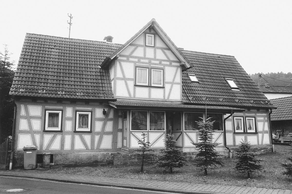 Streckhof aus dem späten 18. Jahrhundert mit späteren Umbauten. Eingeschossiges Doppelhaus über niedrigem Sandsteinsockel aus schlichtem Fachwerk mit langen Diagonalstreben und traufseitig angeordnetem Eingang. Satteldach mit Aufschiebling. Das Zwerchhaus aus dünneren Hölzern ist eine Zutat des 19. oder 20. Jahrhunderts.