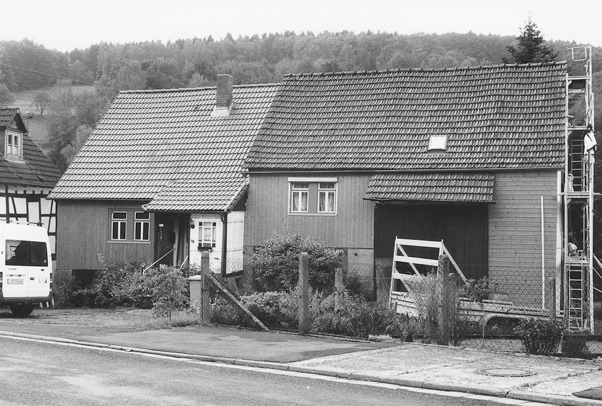 Kleiner Streckhof des 19. Jahrhunderts mit eingeschossigem Fachwerkwohnhaus auf Stallkeller in Sandstein und verschindelter Stallscheune, im Obergeschoss teilweise zu Wohnzwecken ausgebaut. Sehr wenig verändertes Wohnstallhaus, in jüngster Zeit verbrettert.