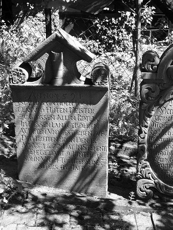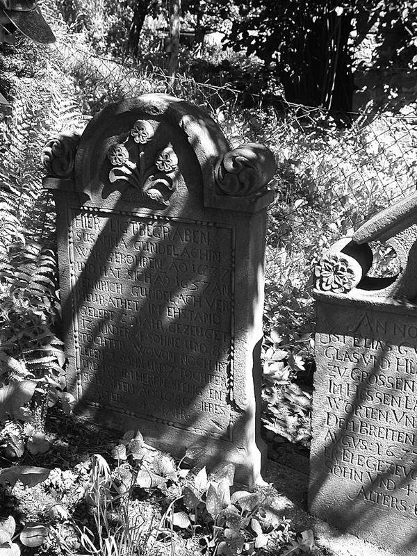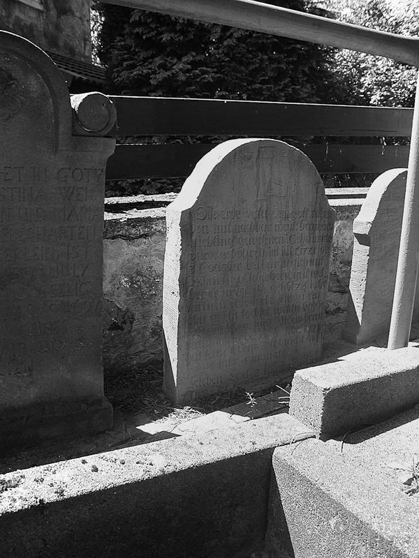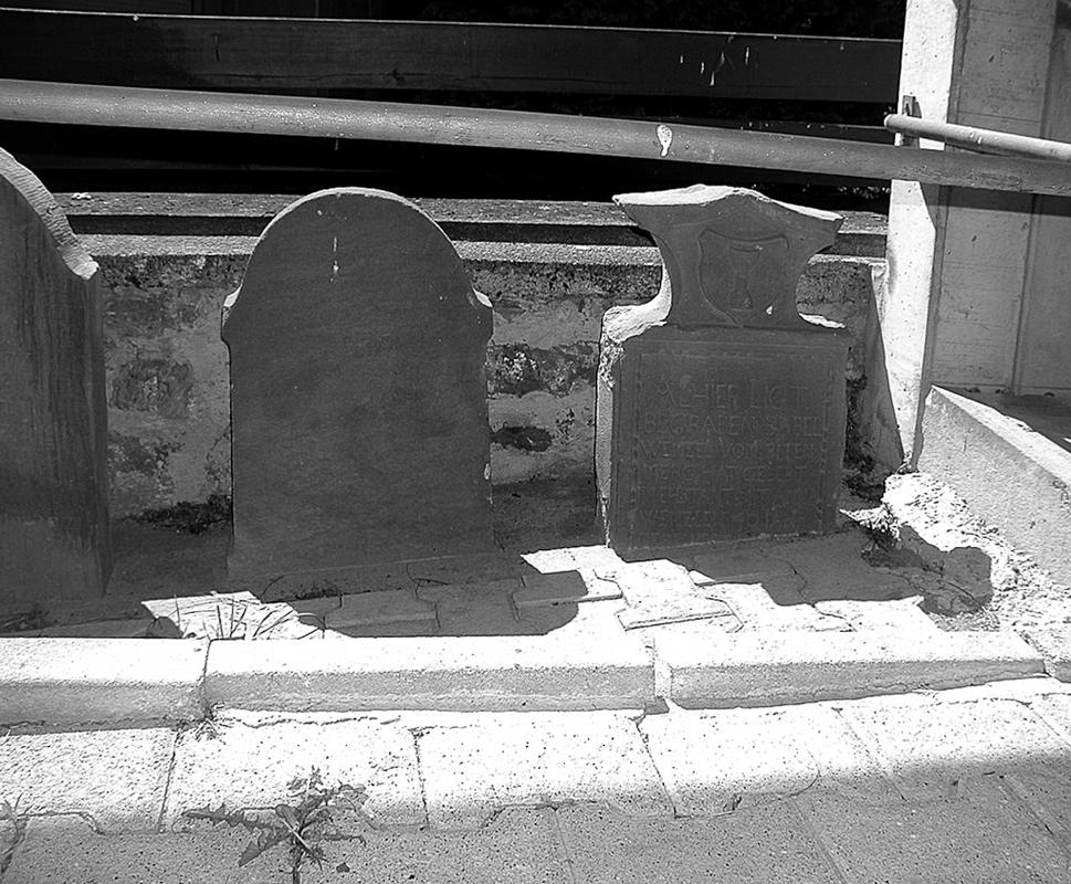 Besonders erwähnenswert sind zwei klassizistische Sandsteingrabmale in Obeliskenform mit Kugelabschluss aus dem frühen 19. Jahrhundert.