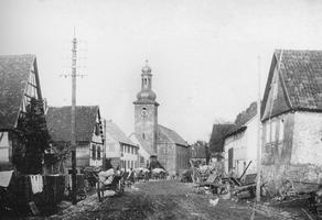 An der alten Handelsstraße nach Leipzig gelegenes, lang gestrecktes Straßendorf mit älterem Dorfkern zwischen Straße und Kinzigebene. Mittelpunkt des Ortes ist die spätgotische katholische Kirche, an deren Stelle aber bereits ein Vorgängerbau stand. Nördlich von ihr entwickelte sich ringförmig entlang der Marienstraße der älteste Siedlungsbereich des Dorfes. Später dehnte sich die Bebauung nach Osten und Westen entlang der alten Reichsstraße aus. Die zweigeschossigen Bauernhöfe stehen meist als Streckhöfe traufständig zur Straße und datieren in das 18. / 19. Jahrhundert. Die Entwicklung des Dorfes ist im Grundriss noch gut ablesbar. Der trotz der vielbefahrenen Durchgangsstraße in seiner dörflichen Struktur gut erhaltene alte Ortskern ist aus historischen Gründen als Gesamtanlage geschützt.