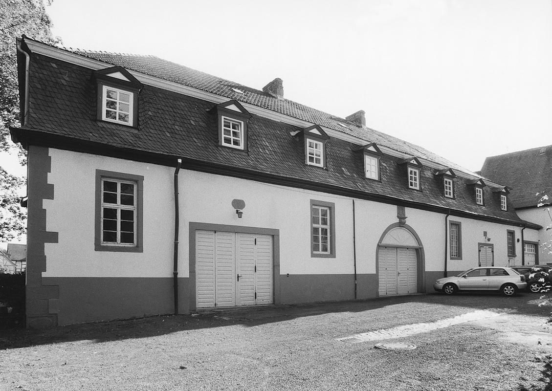 Remise von 1718. Eingeschossiger, massiver Putzbau mit rundbogigem Einfahrtstor, darüber Wappen und Monogramm des Erbauers Graf Ferdinand Maximilian I. Mansarddach mit regelmäßig angeordneten, stehenden Gauben.