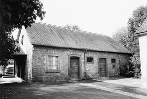 Das Ensemble wird im Westen von einem eingeschossigen, langgestreckten Remisen- und Stallbau in Sandstein begrenzt.