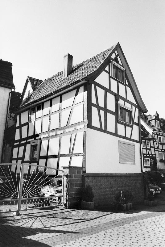 Giebelständiges, zweigeschossiges Wohnhaus um 1700. Erdgeschoss massiv und verputzt, Obergeschoss in einfachem Fachwerk. Zwei Fensterachsen, Erschliessung in der Mittelachse über kleine Treppe. Satteldach mit Aufschiebling.