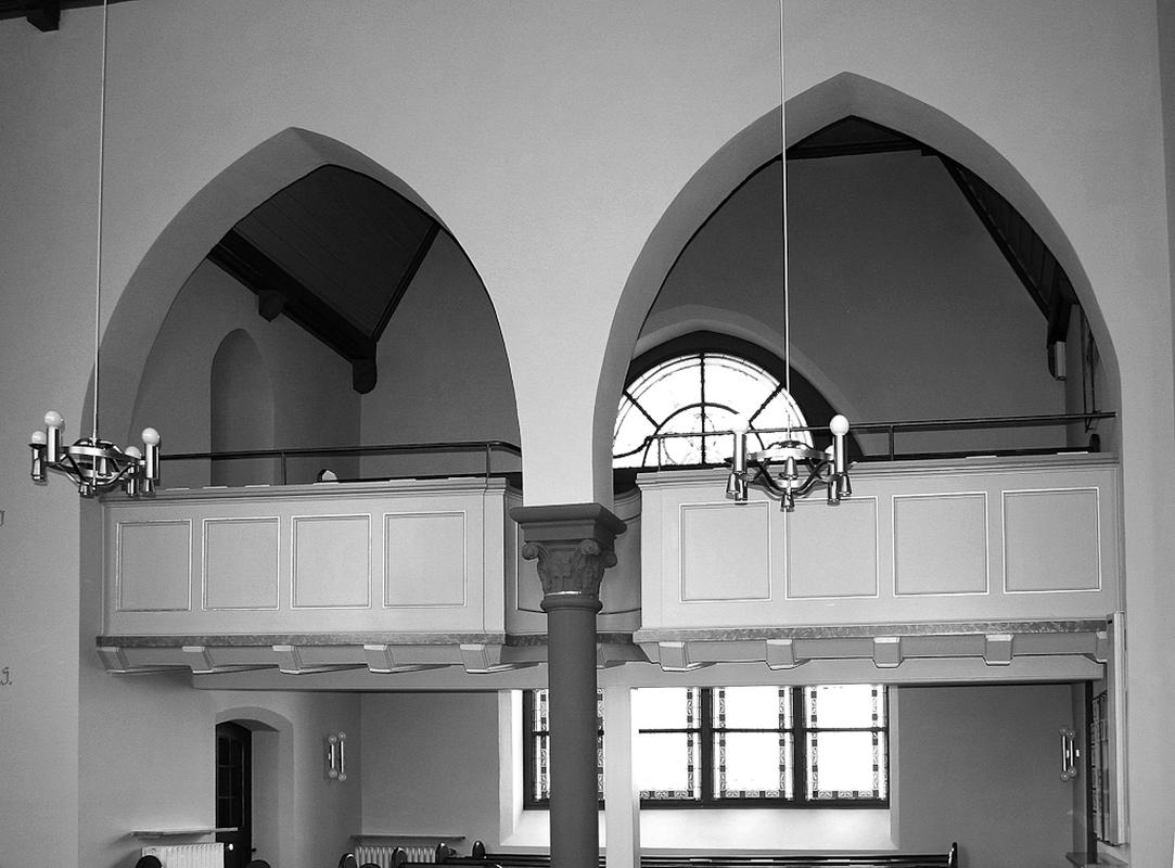 Die kleine evangelische Gemeinde Orbs gehörte seit 1868 zu Aufenau. Seit dieser Zeit kam einmal monatlich der evangelische Pfarrer aus Aufenau nach Orb, um in einem größeren Raum des Salinengebäudes einen Gottesdienst abzuhalten. Während der kurzen Regierungszeit des Großherzogs Ernst Ludwig von Hessen- Darmstadt wird 1902/03 die lange geplante eigene Kirche durch den Herborner Architekten Ludwig Hofmann errichtet. Einweihung am 10.9.1903. Die evangelische Gemeinde Orbs hatte jetzt eine eigene Kirche, war aber nach wie vor Filialkirche von Aufenau. Der kleine neogotische Saalbau mit Chorapsis, nördlichem Querhaus und Flankenturm bot 180 Gläubigen Platz. Damit war er bereits kurz nach Fertigstellung zu klein. 1921 Einbau einer Orgelempore. Im Zweiten Weltkrieg wurde die Kirche schwer beschädigt, Nach einer Notreparatur wurde sie 1948 Pfarrkirche, da Bad Orb aus dem Aufenauer parochialen Verbund gelöst wurde. 1950 wurde ein Pfarrhaus hinter der Kirche erbaut. 1952 entstand wegen Platzmangels im Querhaus zwischen den beiden Arkadenbögen eine Empore, 1953 erhielt die Kirche zwei Glocken (vom Hamburger Glockenfriedhof) aus Reichenstein (Schlesien), gegossen 1673 und aus Schloßberg (Ostpreußen), gegossen 1706. 1956/7 wurde die Pfarrkirche um eine Achse nach Westen erweitert, dabei Wegfall der originalen Fassade. 1982 erhielt sie den Namen "Martin-Luther-Kirche". Ursprünglich dreiachsiger Sandsteinbau mit großen, zweibahnigen Maßwerkfenstern ohne Dekor in der Südwand, im Querhausgiebel breites vierbahniges Maßwerkfenster. In der ursprünglichen Raumkonzeption durch ein Westportal mit einem darüber angeordnetem Fenster erschlossen, wodurch der Besucher sofort einen Gesamteindruck des Raumes erhielt. Durch Verlängerung des Schiffes nach Westen Anbau eines kleinen Westeingangs und Neubau der Fassade in schlichten modernen Formen. mit einer rechteckig gerahmten Fenstergruppe zu vier Achsen, darüber Okulus als Nimbus hinter einem hohen Sandsteinkreuz. Das vorhandene neugotische Fenster wurde als vierte Achse in die Südseite eingebaut. Nördlich hoher Turm mit dreifachen Schallarkaden und 1953 wiederaufgebautem polygonalem Spitzhelm, vorgelagert ein halbrunder Treppenturm. Seitenschiffgiebel mit großer Rose und vierteiligem Lanzettfenster, darüber in der Giebelspitze Biforienfenster mit Maßwerkblende. Am Sakristeianbau zwei Fenster mit Dreiecksgiebeln und hölzernem Dacherker. Runder Chor mit Strebepfeilern, Maßwerkfenstern und Okuli. Vierpassfenster im Übergang vom Langhaus zum Chor. Im Innern tonnengewölbte Holzdekke mit zwei Hängewerken, der eingezogene Chor mit Rippengewölbe. Das nördliche Seitenschiff durch zwei Arkaden vom Mittelschiff geschieden, getragen von einer Säule mit Knospenkapitell. Erhalten ist die komplette neogotische Ausstattung mit Kanzel, Taufbecken Altar und Gestühl. Die Altarbibel 1903 von Kaiserin Auguste Victoria gestiftet. Im Chor und Nordschiff zart gegliederte Glasfenster aus der Erbauungszeit. Das Querhaus mit nachgeprägtem neugotischen Fliesenboden.