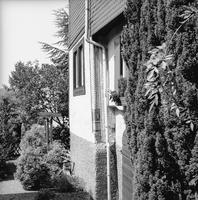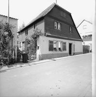 Wohnhaus mit Krüppelwalm und nachträglich einseitig bis zum Erdgeschoss abgeschlepptem Dach, wodurch die breite, asymmetrische Giebelfront entsteht. Das massive Erdgeschoss war früher als Hofmauer weitergeführt. Die alte Verschieferung des Obergeschosses wurde ersetzt, dabei die frühere Fensterstellung beibehalten. An einem rückwärtigen, leicht vorspringenden Gebäudeteil ein nachträglich angebrachter geschnitzter Eckpfosten mit gedrehtem Stab, vermutlich der ehemalige Eckpfosten des aus dem 17. Jh. stammenden Fachwerk-Obergeschosses.