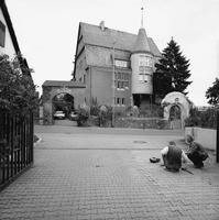 Bauherr: Jakob Klein (Johannisberger Maschinenfabrik). Architekt: Georg Hartmann, Geisenheim. Bauinschrift an der Südfront: „Dies Haus ist erbaut AO 1910/1911". Sehr markant prägt die am südlichen Rand von Johannisberg-Grund gelegene, weithin ins Tal sichtbare Villa den Ortseingang. Der Putzbau mit hohem, verschiefertem Mansarddach zeigt künstlerisch ausgebildeten Details und Schmuckelemente in Jugendstilformen. Der einfache, auf einem Rechteckgrundriss basierende Baukörper wird durch den seitlich angeschobenen, schlanken, spitzhelmbekrönten Turm über dem Eingang sowie einen Erker und Balkons an der südlichen Giebelfront aufgelockert. Handwerklich anspruchsvolle Einzelheiten wie reliefierte Werksteine, zierliche Sprossenfenster und die wellenförmig verlegte Verschieferung der Giebelspitze zeichnen den qualitätvollen, eigenständigen Bau aus. Im Inneren sind u. a. Wandvertäfelungen aus Eiche sowie einige Bleiglasfenster erhalten. Zugehörige Gartenanlage mit Brunnen, alten Bäumen und Einfriedung, bestehend aus massivem Torbogen, ebensolcher Pforte, Pfosten und eisernem Gitterzaun.