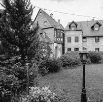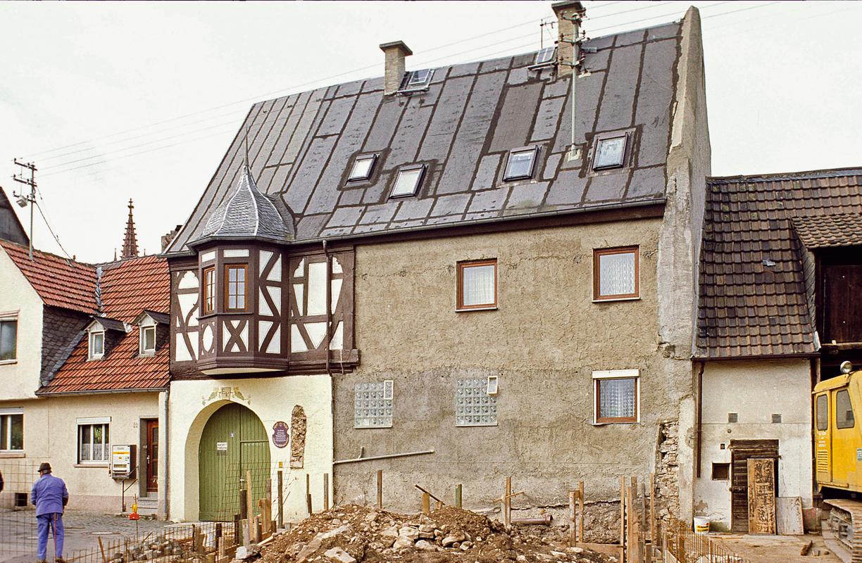 Traufständiger Bau mit Fachwerk-Obergeschoss, teilweise massiv erneuert, auf massivem Erdgeschoss. Durch das benachbarte Haus Nr. 22 größtenteils verdeckt, so dass von der Straße nur das westliche Drittel mit rundbogiger Durchfahrt und polygonal vorspringendem, erneuertem Erker mit geschweifter Haube zu sehen ist. Der Sturz eines Erkerfensters trug früher die Jahreszahl 1618. In der Durchfahrt ein Türsturz in Eselsrückenform mit inschriftlichem Datum 1561, außerdem alte Torangeln aus Sandstein. Westliche Fachwerk-Giebelwand verschiefert; die Ostwand als massiver Schildgiebel ist wohl älter als der im 16. Jh. errichtete und nach 1629 (d) veränderte Fachwerkbau. Unter dem rückwärtigen Anbau ein Gewölbekeller. In der rückseitigen Hofmauer Rest eines Brunnens. Für die Geschichte von Stadt und Region bedeutendes, in Ortschroniken vielfach erwähntes und damit für die Identität Geisenheims bedeutsames Haus.