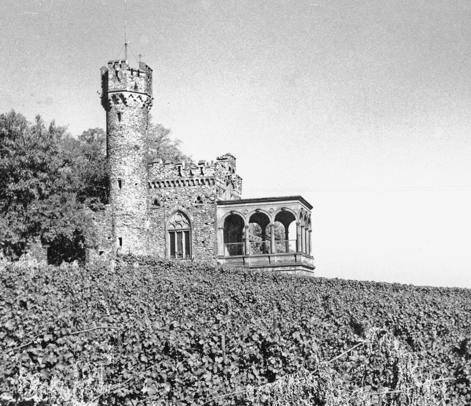 Erbaut 1873, Bauherr: Jakob Georg Hermann Mumm, dänischer Generalkonsul; Architekt: F. Schaedel, Frankfurt. Die als Gartenhaus errichtete Kunstruine erhielt den Namen Schwarzenstein nach Burg Schwarzenstein bei Wesel, dem Stammsitz eines vermeintlichen älteren Zweigs der aus Solingen und Frankfurt stammenden Familie Mumm. Fortan nannte sich die seit 1873 in ihrem Adel bestätigte Familie Mumm „von Schwarzenstein". Heute Hotel und Restaurant.