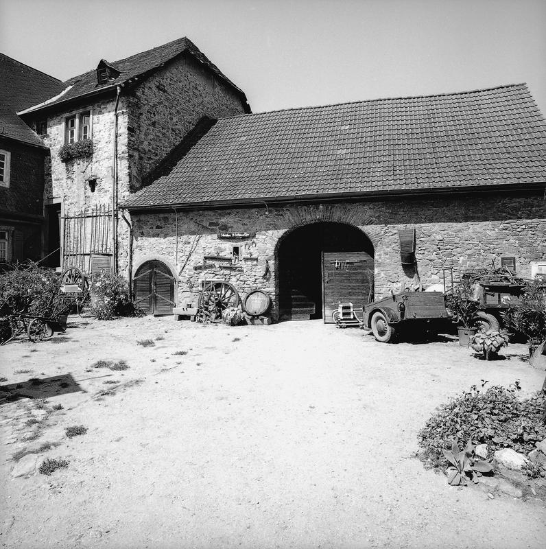 Hofreite in Hanglage am westlichen Rand des Oberfleckens, bestehend aus zwei im rechten Winkel zueinander stehenden Hauptflügeln und weiteren Wirtschaftgebäuden. Älterer, breitgelagerter, zweigeschossiger Massivbau mit verschiefertem Krüppelwalmdach. Nach Westen rundbogige Einfahrt in die erdgeschossige Kelterhalle. Hier eine Holzbalkendecke auf Unterzug mit Lehmwickelfüllungen; darüber ein Wohngeschoss, darunter Gewölbekeller. Nach Süden ein um 1622/23 (d) angebauter, ebenfalls zweigeschossiger Flügel mit massiver westlicher Traufwand. Sonst Fachwerk über massivem Erdgeschoss, Obergeschoss verschiefert. Satteldach mit kleinem Firstwalm, ursprünglich mit Schieferdeckung. Hofseitiger Eingang mit profiliertem, geohrtem Sandsteingewände, im Sturz ein Hauswappen, 17. Jh. Im Inneren erdgeschossige Wohnstube mit Stuckdecke, durch Mittelunterzug geteilt, mit je einem achteckigen, von profilierten Leisten gerahmten Feld. Türen des 18./19. Jhs. mit Beschlägen. An den Massivbau anschließende, ebenfalls massive Scheune bzw. Kelterhalle mit flachbogiger Einfahrt. Der teilweise gepflasterte Hof von einer Mauer umgeben. Ein kleineres Wirtschaftsgebäude an der Ecke wurde durch einen Garagenneubau ersetzt, der ehemalige überdachte Torbau mit rundbogiger Durchfahrt schon vor längerer Zeit entfernt. Der besondere Wert des Winzergehöfts liegt in seinem weitgehend authentisch erhaltenen Zustand bei ununterbrochener Nutzungskontinuität.