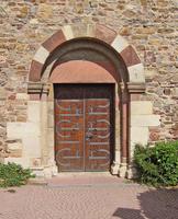 Errichtet aus lagerhaftem Bruchsteinmauerwerk unter weitestgehendem Verzicht auf gliedernde architektonische Elemente. Der jetzt steinsichtige Außenbau war ehemals verputzt. Westportal als Säulenstufenportal, rechteckig unter doppelt abgetreppter Bogenlaibung auf eingestellten Säulen, am Bogen Wechsel weißer und roter Quader, schöner romanischer Türbeschlag. Einfache axiale Langhausfenster in den Arkadenachsen. Am Vierungsturm an jeder Seite zwei Klangarkaden in Rundbogenblenden mit Würfelkapitellsäulchen, darüber Zeltdach. In der erhöhten, nach 1170 angefügten Apsis drei hochliegende, in das Gewölbe einschneidende Fenster. Abschluss mit Rundbogenfries auf abgeschrägten Konsolen. Nach Süden anschließende zweigeschossige Sakristei, an deren Südseite Zwillingsfenster, Mittelsäulchen mit Würfelkapitellen. Die südliche Seitenschiffwand wurde bei der Renovierung 1938/52 fast ganz erneuert, am südlichen Querhausarm dabei ein Treppenturm für die im Innern rekonstruierte Empore angefügt.