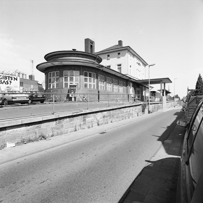 Ursprünglich gab es zwei Bahnstationen in Oestrich und Winkel; sie wurden 1864 in Mittelheim zusammengelegt und der Bahnhof in Mittelheim errichtet. Am östlichen Ortsrand gelegener Typenbahnhof der Rheingaustrecke. Kubisch wirkender Putzbau des Klassizismus nach Entwurf Heinrich Veldes aus zweieinhalb Geschossen mit axialem Risalit (ehemals mit Fugenschnitt) und Walmdach. Um 1920-30 erfolgte die Anfügung eines eingeschossigen Erweiterungsbaues (vergl. Eltville) in zeittypischen Formen mit gerasterten Fensteröffnungen, der in einer gestuften Rotunde endet. Die dunkle Klinkerverblendung zieht sich auch über die Erdgeschosszone des Altbaues; dort ein weit auskragendes Vordach auf Stützen. Im Gegensatz zum Eltviller Bahnhof blieben in Mittelheim die Bauphasen deutlich ablesbar.
