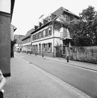 Traufständiges Wohnhaus des frühen 19. Jhs., Massivbau mit Krüppelwalmdach. Fünfachsig symmetrische Putzfassade mit geschosstrennendem Gesims. Mitteleingang in flachbogig geschlossenem Sandsteingewände mit Keilstein. Hochformatige Obergeschossfenster mit schmiedeeisernen Brüstungsgittern. Frühere sprossengeteilte Fenster nicht erhalten, neue Balkons an der Giebelseite. Das anschließende, bis zur Backhausgasse reichende Grundstück ist von einer Mauer umgeben, darin Einfahrt zwischen Sandsteinpfosten. Das Haus ist Bestandteil der geschlossenen Bebauung der Hauptstraße.