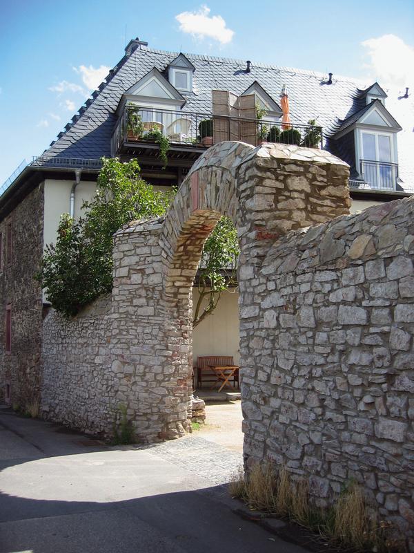 Wirtschafts- und Nebengebäude des nahe am Rheinufer gelegenen ehemaligen Probeck'schen Hofes, dessen vermutlich im 16. Jh. entstandenes, später mehrfach verändertes Herrenhaus um 1970 abgebrochen wurde (siehe Abb. S. 94 und 825). Der verbliebene Baukomplex wurde 2000/2001 erneuert und dabei teilweise verändert. Stattlicher Bau auf L-förmigem Grundriss. An der Gänsgasse ehemalige Scheune und Kelterhalle aus Bruchsteinmauerwerk. Zur Hofseite Einfahrt mit Korbbogenschluss. Im rechten Winkel dazu anschließender Wohntrakt mit Fachwerk-Traufseite und massiver Giebelwand. Nordwestseite stark verändert und unkenntlicht, Rheinseite jedoch wohlerhalten, im Obergeschoss dreifach verriegelt, mit regelmäßigen Figurationen und Zierformen des frühen 18. Jhs. Beide Flügel unter einem großen, winkelförmigen, schiefergedeckten Dach mit Krüppelwalmen zusammengefasst. Neue, relativ groß dimensionierte Gauben. Grundstück mit Mauereinfriedung, neuer Torbau an der Gänsgasse.