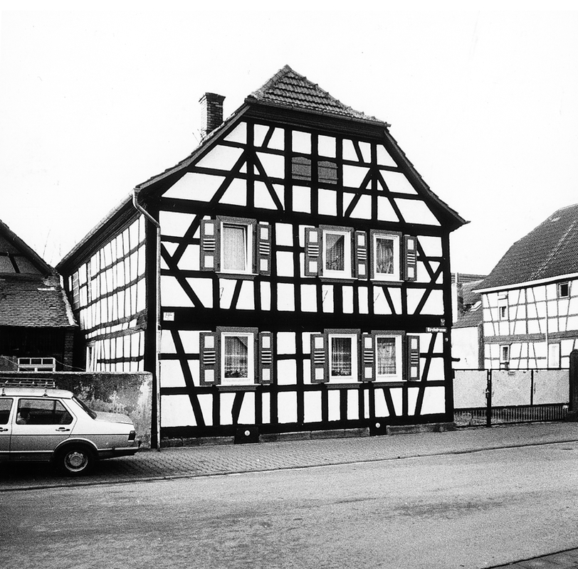 Das zweigeschossige, giebelständige Bauernhaus ist ein gut erhaltener Bautyp der Fachwerkhäuser des Ortes. Es zeigt einen schlichten Fachwerkverband mit starken Hölzern, Eckstreben und Gegenstreben, wie es in der 2. Hälfte des 18. Jhs. in dieser Kulturlandschaft üblich war. Das traufseitige Rähm ist leicht profiliert. Seine Lage im Straßenraum, im Ensemble mit Schule und Kirche/Rathaus, unterstreicht seine städtebauliche Bedeutung als Kulturdenkmal.