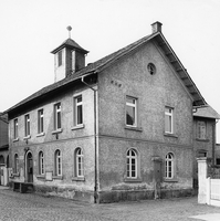Schlichter Massivbau der 2. Hälfte des 19. Jhs. mit Rundbogenfenstern im EG, einem umlaufenden Karnies und einem quadratischen Dachreiter mit spitzem Pyramidendach, der als Zeugnis des ehemaligen Gemeinwesens des Ortes Kulturdenkmal aus geschichtlichen Gründen ist. Bemerkenswert ist die künstlerische Qualität des schmiedeeisernen Hoftores.