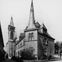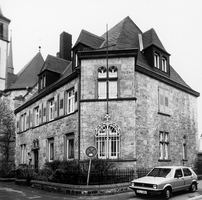 Der repräsentative zweigeschossige Steinbau aus behauenem Sandsteinquadermauerwerk ist nach Fertigstellung der Kirche 1892 als Eckgebäude zur Pfarrgasse errichtet worden. Der früher spitzbehelmte rechteckige Erker (historisches Foto v. 1928) unterstreicht die städtebauliche Einordnung. In Proportion und Detail (schön profilierte Sandsteingewände, Portal mit Oberlicht und originaler Tür) stellt sich hier ein qualitätvoller Gründerzeitbau dar, der Kulturdenkmal aus baukünstlerischen und städtebaulichen Gründen ist.