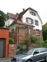 Zweigeschossiges, über hohem Sockelgeschoss sich giebelständig erhebendes Wohnhaus, für Valentin Kappel von dem Bensheimer Architekten Wilhelm Nahrgang wohl kurz nach 1900 erbaut. Sockel und Hauptgeschoss in Sandsteinrustika aufgeführt, darüber Putzfassade; als Abschluss Krüppelwalmdach. Zur Straße dreiseitiger Vorbau mit eigener Verdachung, die nördliche Traufseite mit Satteldachzwerchhaus; an dieser Seite auch der über eine Treppe erreichbare Eingang. Die Fenster des Gebäudes mit Klappläden und originaler Gliederung (Oberlichter versprosst).