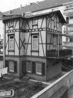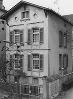 Ländliches Vorstadthaus von ca. 1858 im Geschmack des romantischen Klassizismus; rückwärtig Gartenhaus um 1870 in Fachwerk.