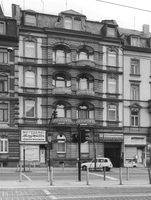 Stattliches Mietshaus des Neobarock von 1894 nach Entwurf von M. Jacobi mit originell durch den Wechsel konkaver und konvexer Form gestalteten Balkons.