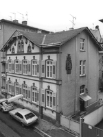 Spätklassizistisch-romantisierendes Vorstadthaus von 1861; Fassadengiebel mit geschnitzten Konsolen und Schleierbrettern.