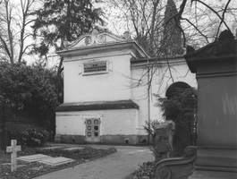 Klassizistische Kolonnade zwischen Eckpavillons von 1828 nach Entwurf von F. Rumpf als östliche Begrenzung des urspr. rechteckigen Friedhofsareals (s.o. Eckenheimer Landstraße 188-230).