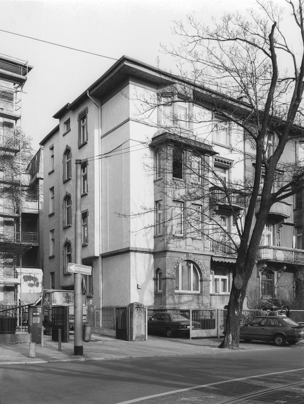 Mietshaus von 1912 nach Entwurf von F. A. C. Weber mit Jugendstilelementen; ehem. gemeinsames Mansarddach mit Thüringer Straße 1.