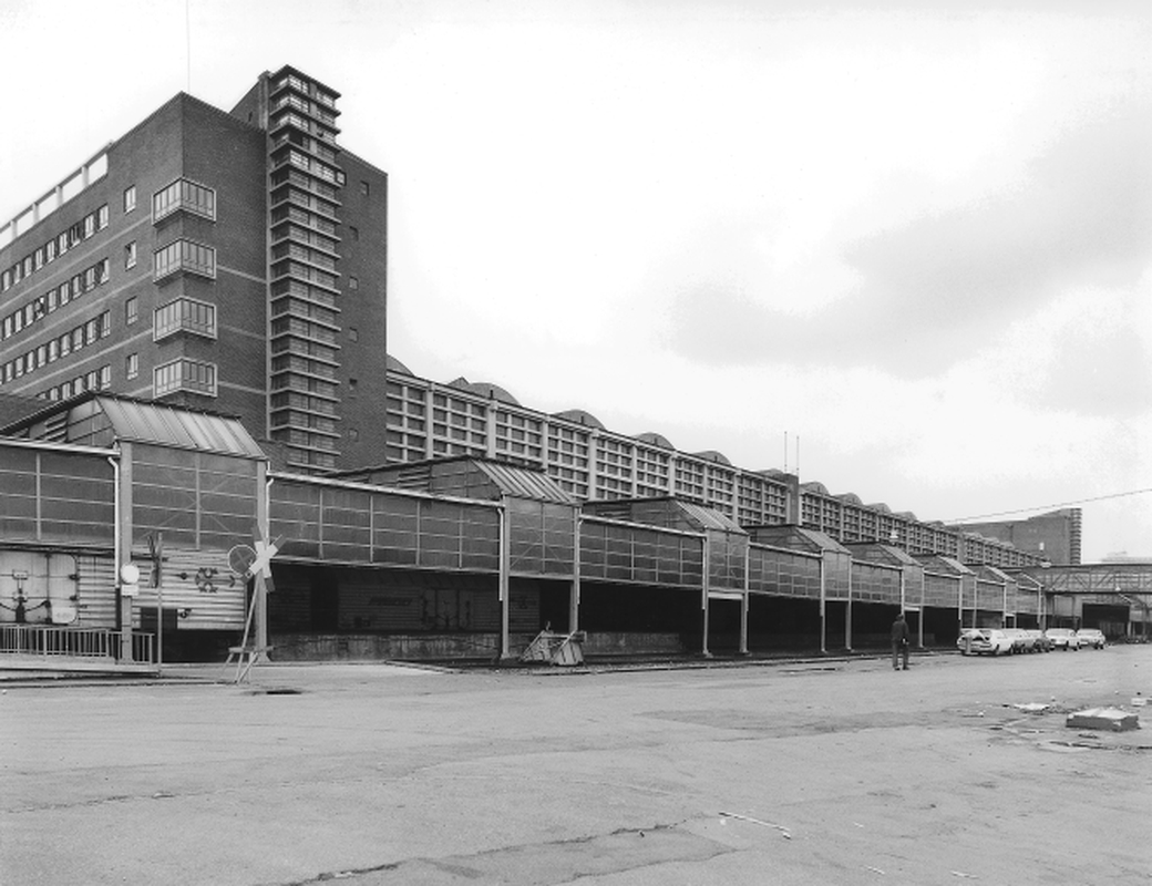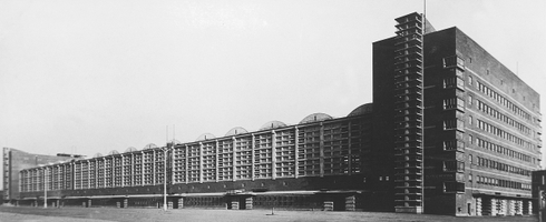 Markthallenkomplex, ursprünglich bestehend aus Großmarkthalle, Importhalle mit Verbindungsstegen, Verladerampe und Stellwerk von 1926-28 nach Entwurf von M. Elsaesser als richtungsweisender Zweckbau der Moderne. Von 2010 bis 2014 Umbau zur Europäischen Zentralbank.