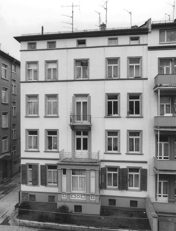 Mietshaus des Spätklassizismus von 1863 mit zentralem Altan; orig. Geländer.
