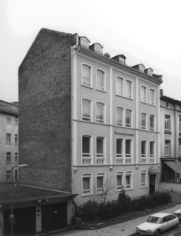 Mietshaus des Spätklassizismus von 1861 mit gleichmäßiger Fassadengliederung durch Lisenen; dekorative Brüstungsfelder.