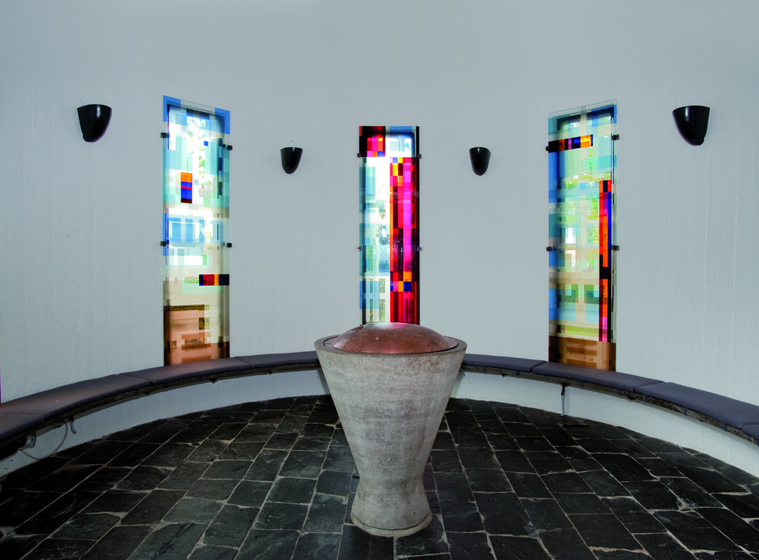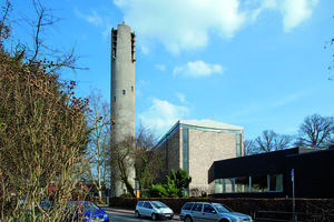 Städtebaulich bildet der Turm von St. Wendel eine weithin sichtbareDominante, um die sich einzelneBauglieder in einer parkartigen Anlagegruppieren. Subtil leitet der geschwungene Baukörper der Kirche von der Straße zur Friedhofsmauer und zu den Wohnbauten über. Die Kirche steht stadtteilgeschichtlich für das Erstarken der katholischen Gemeinde im wachsenden Sachsenhau sen. Typengeschichtlich eher traditionell gehalten, lebt der Bau künstlerisch vom gelungenen Zusammenspiel der Glasgestaltung Meistermanns mit der ebenso monumentalen wie schwebenden Bauform Krahns. Als späte Vollendung des Ensembles fügt sich das Gemeindehaus maßstäblich ein und bildet in klarer Formensprache einen gültigen Ausdruck des gemeindlichen Aufbruchs der 1970er Jahre.