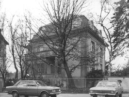 Wohnhaus des Neoklassizismus von 1912 nach Entwurf von E. F. Ambrosius mit Säulenerker und Pilastergliederung.