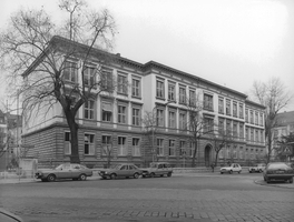 Ehemalige städtische Bürgerschule für Knaben in spätklassizistischem Dekor von 1870/71 nach Entwurf von K. F. Henrich und J. J. G. Rügemer mit strenger Fassadenrasterung sowie prägnantem Mittelrisalit. Urspr. Verblendsteinfassade unter Verputz über rustiziertem Sockelgeschoss in Werkstein, desgleichen Gliederungs- und Schmuckelemente.