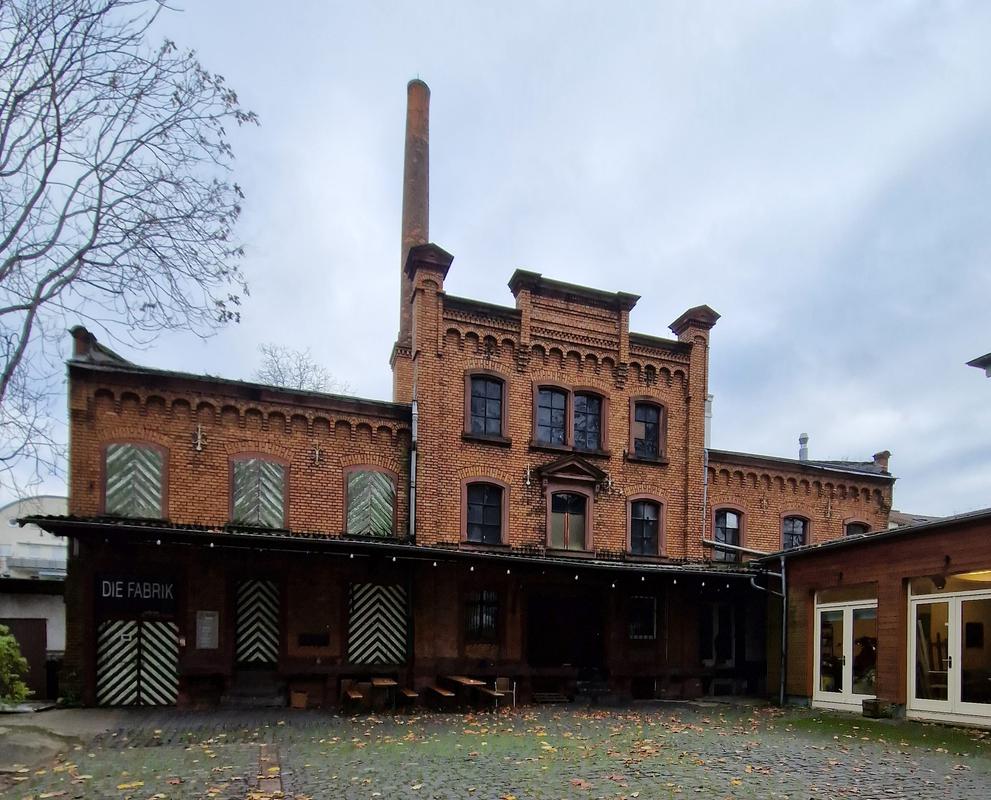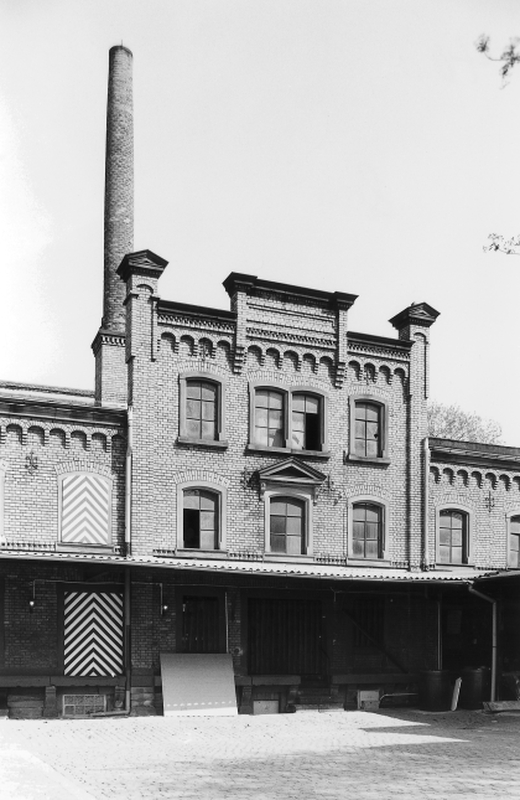 Das zum Innenhof hin orientierte, neunachsige Fabrikgebäudes zitiert mit seiner zweigeschossigen bzw. im Mittelrisalit dreigeschossigen Schaufassade aus Backstein in etwas vereinfachter Form ebenfalls Renaissancemotive. Am aufwendigsten gestaltet ist der dreiachsige Mittelrisalit mit prominent hervortretender Attika und einer ädikulaartigen Fensterverdachung im Zentrum des ersten Obergeschosses, die, wie alle Fenstergewände, in Sandstein ausgeführt ist. Das abschließende Pultdach war an Stelle der heutigen Teerpappe ursprünglich mit Schiefer gedeckt und zeigte zu beiden Seiten des Mittelrisalits jeweils drei Dachgauben, die nach leichter Kriegszerstörung nicht wiederhergestellt wurden. Auch die drei großen, ursprünglich quadratischen Dachfenster unterhalb des Firstes wurden wohl schon beim Wiederaufbau verkleinert.