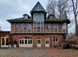 Das repräsentative Etagenwohnhaus des Fabrikdirektors ist viergeschossig, ein voll ausgebautes, schiefergedecktes Mansarddach mitgezählt. Es zeigt eine bildhauerisch sehr differenziert ausgearbeitete Sandsteingliederung in Formen der deutschen und französischen Renaissance. Nach leichter Kriegszerstörung wurde das Dachgeschoss vereinfacht wiederaufgebaut und bei der jüngsten Renovierung teilweise rekonstruiert. Der an die Südseite angefügte, höhere Neubau beeinträchtigt das ursprüngliche Erscheinungsbild.
