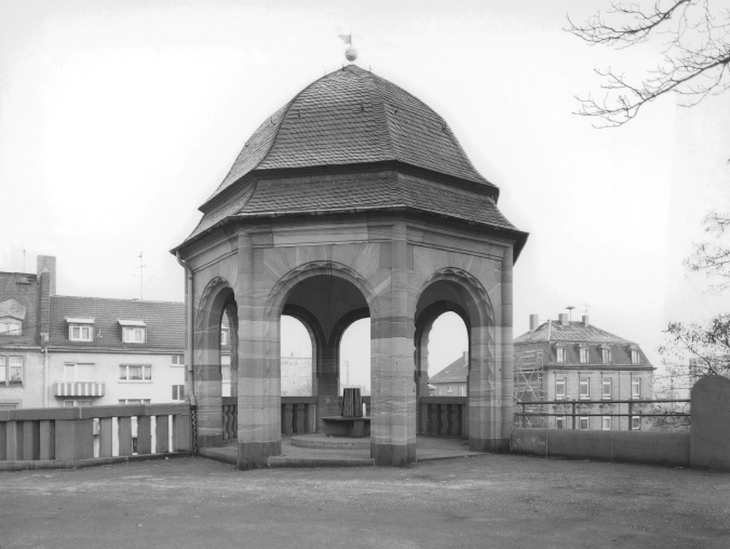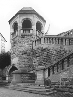 Mächtige Stützmauer gegen den Mühlberg mit Treppenaufgang und polygonalem Pavillon, errichtet 1905-1907 im Monumentalstil Kaiser Wilhelms II.
