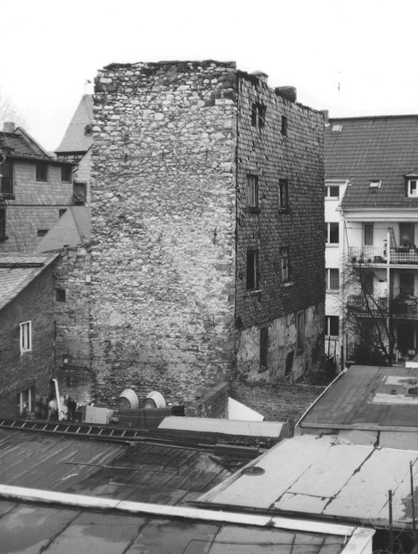 Bei dem turmartigen Gebäudefragment auf dem rückwärtigen Teil des Grundstücks handelt es sich nicht um die Fragmente eines spätgotischen Wohnturms. Die Entstehungszeit des Hinterhauses ist nach den baulichen Befunden ebenfalls neuzeitlich. Von besonderem Erhaltungswert ist die gewölbte Kelleranlage im Anschluss an das Vorderhaus. Sowohl der Keller mit Kreuzgratwölbung als auch die Fragmente der Süd- und Westwand stammen aus der Zeit zwischen 1572 und 1628. Das Fachwerk der Obergeschosse wurde hingegen 1809 oder kurz danach errichtet.