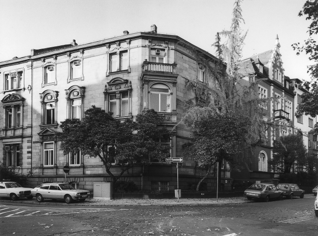 Mietshaus von 1897 im Stil des Neobarock mit Eckerker und -fase.