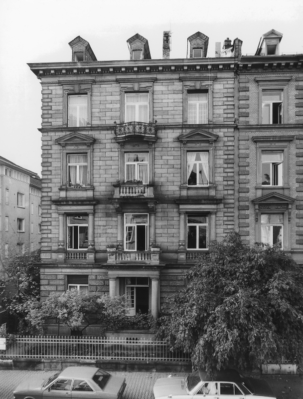 Mietshaus von 1891 nach Entwurf von C. Jost mit Sandsteingliederung in Anlehnung an Formen der Renaissance.